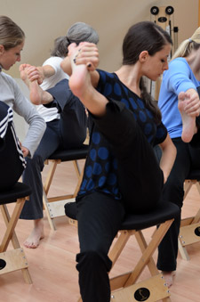 Übungen auf dem Hocker, am Boden und im Stand stärken die innere Muskulatur (lebendige Körpermitte) mit dem Ziel, schonend und effektiv zugleich die natürliche Beweglichkeit der Wirbelsäule wieder herzustellen. Darüber hinaus werden besondere Übungen zur erfolgreichen Kräftigung der Bauchmuskeln ins Training integriert, sowie Übungen zur Verbesserung der Beweglichkeit von Hüfte, Beinen und Schultern durchgeführt.